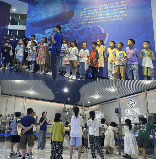 在舜禹股份智慧水务科技馆,展厅里“追寻启航、品质智造、智能创新、生命恩泽、扬帆梦想”五个篇章,将创新科技、科普知识与娱乐体验集为一体,通过介绍,让小朋友们了解水的“前世今生”,明白从小肩负保护水环境的重要责任,也让小朋友们对父母在舜禹股份工作感到骄傲和自豪。